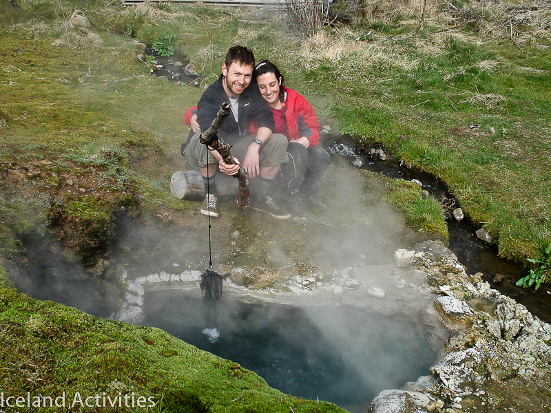 · We will start the tour by showing you Hveragerdi the capital of hotsprings, the town is positioned on an active volcanic zone and earthquakes are frequent thanks to the tectonic movements that rumble below. Our local guide will tell you the story of the town and show you hotsprings that bursted through the ground in the last earthquake that happened on May 29th 2008, with a magnitude of 6,3 on the richter scale. We will also show you how we can use the heat from the ground, by cooking an egg in a boiling hotspring and taste a bread that has been baked in the ground for 24 hours.