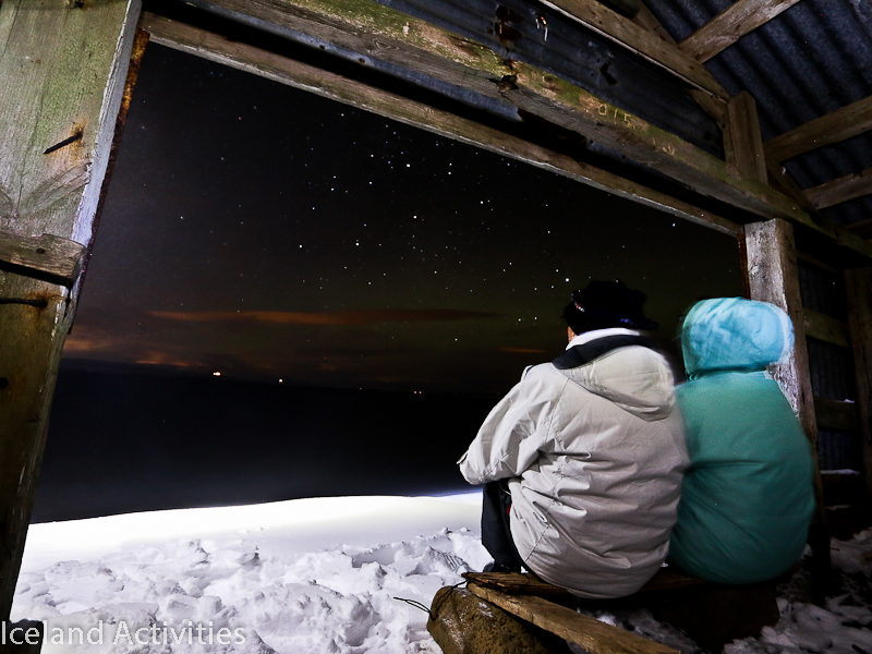 Að vera upp á fjöllum fjarri mannbyggðum þegar himnarnir skarta sínu fegursta eykur áhrifamátt norðurljósanna og ekki skemmir fyrir að vera með heitan súkkulaði bolla til að ylja sér við.